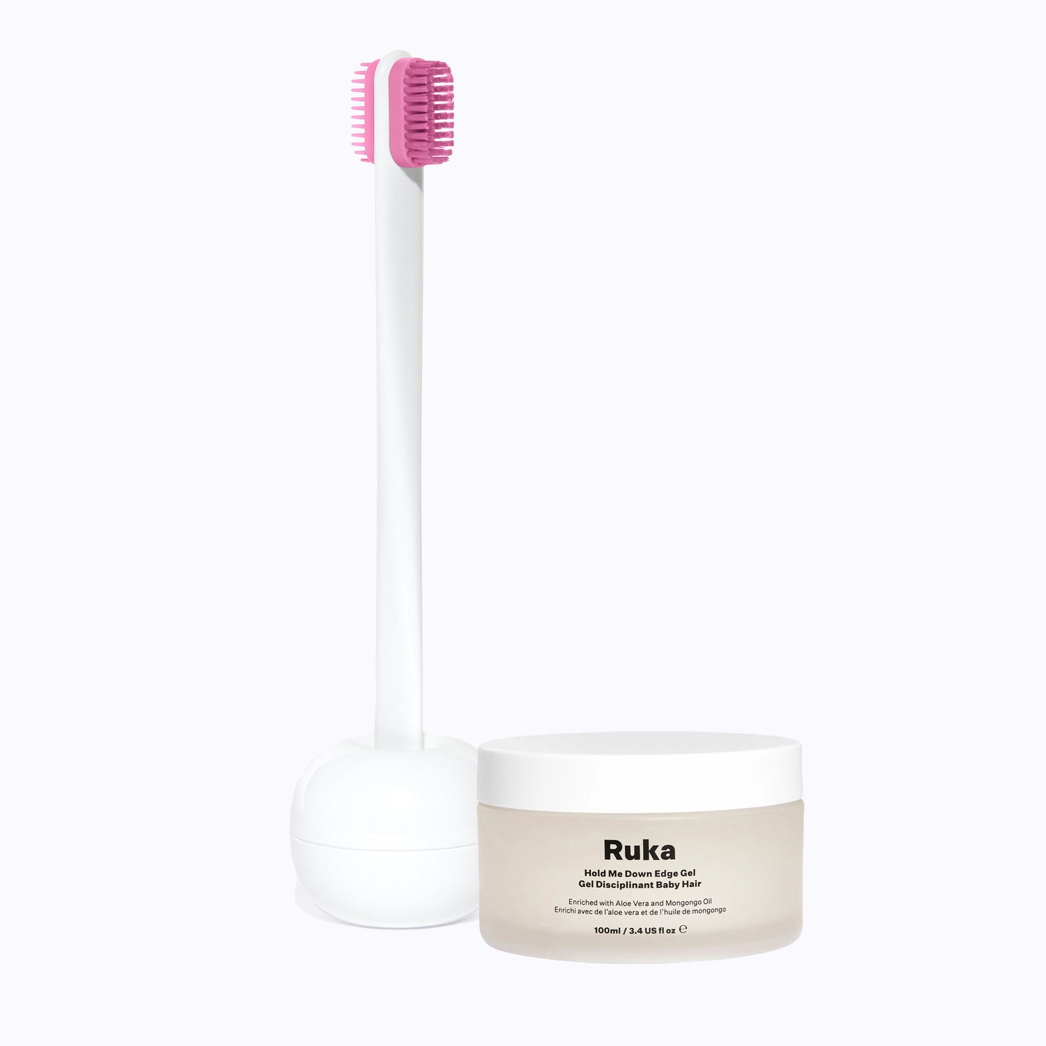 The EdgeSlick, an award winning patent-pending design that boasts of a variation of removable brush pieces in both hard and soft bristle types. You can adjust between the firmness needed to lay your edges how you want. It also comes with a dedicated Ruka pod that allows you to easily store your brushes.