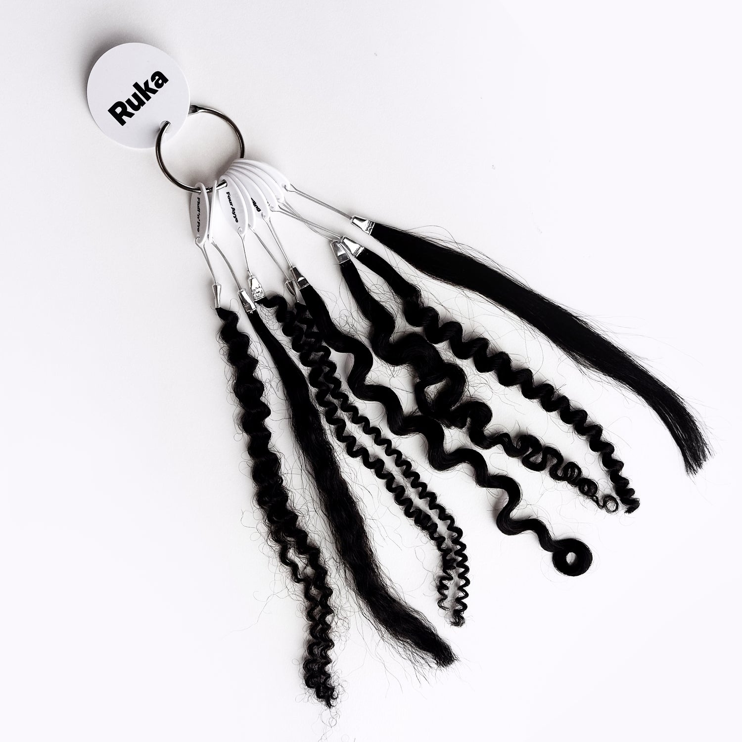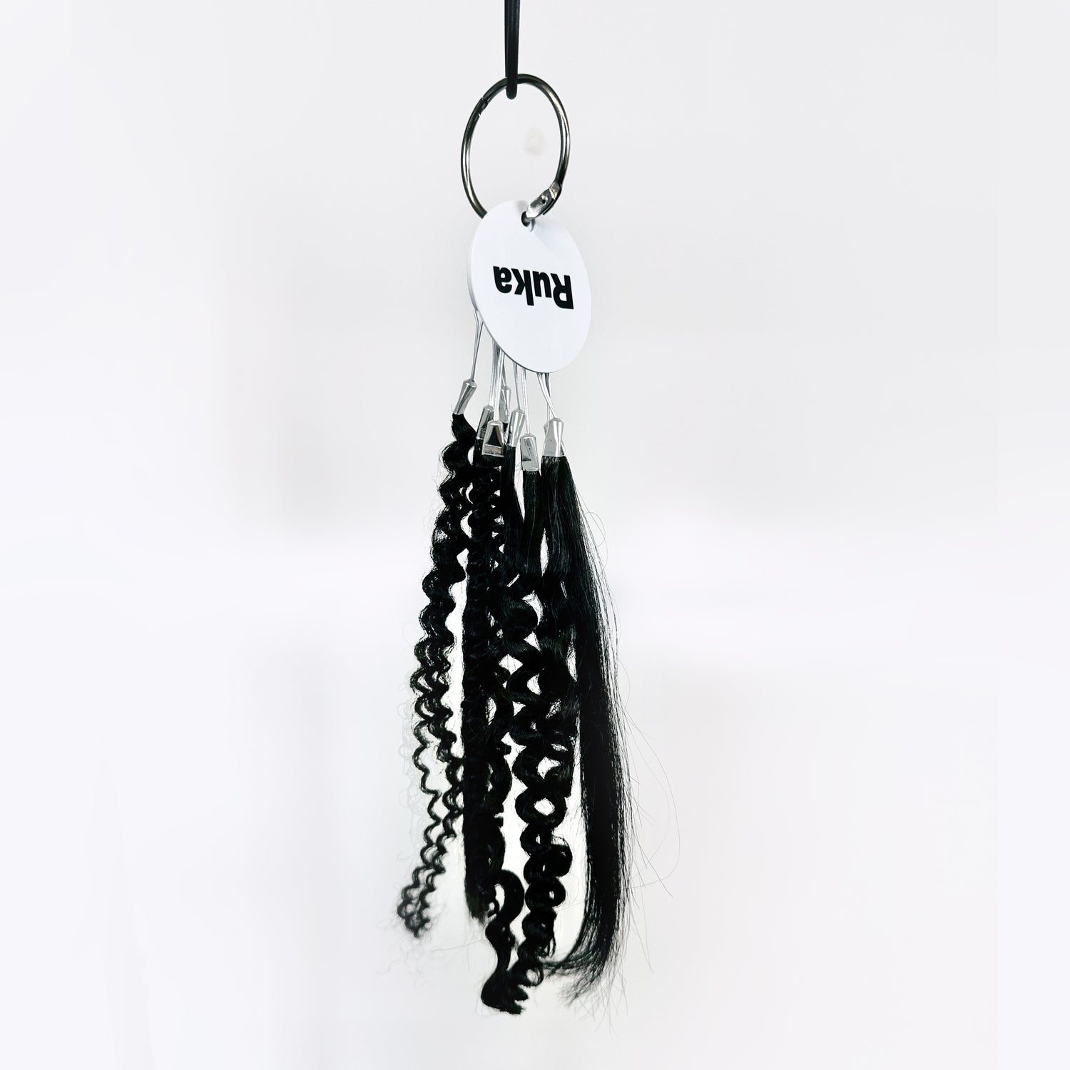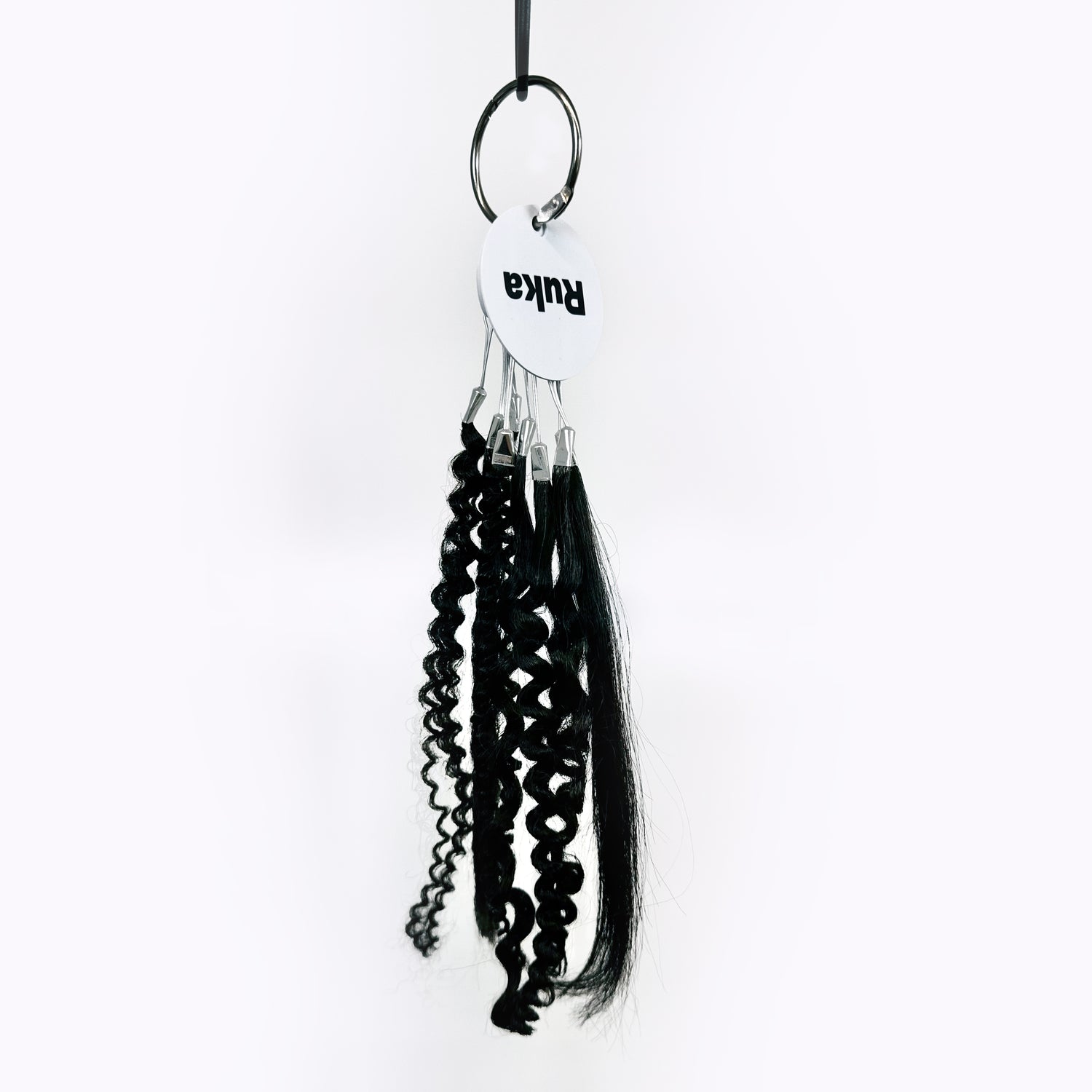 Explore the full Ruka human hair texture match range in one convenient swatch ring. Perfect for testing and comparing our textures in person, this set includes samples of all our signature textures: